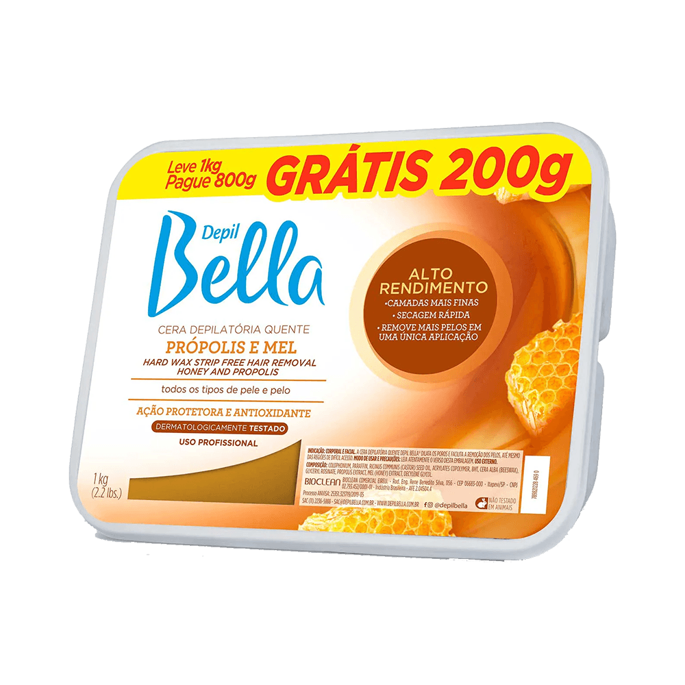 CERA DEPIL BELLA 1KG EM BARRA PROPOLIS E MEL